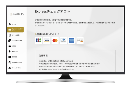 滞在中に宿泊料金・追加料金の非対面決済が可能です。チェックアウト時にフロントで精算をする必要がなく、フロント業務効率化を実現します。