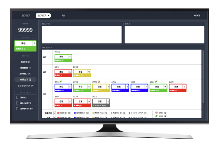これまで紙・客室電話で共有していた清掃状況・ルームステイタスがcrotta上で確認できるようになります。清掃状況・DND/MURなど各清掃スタッフが確認できハウスキーピングの効率UPを実現します。